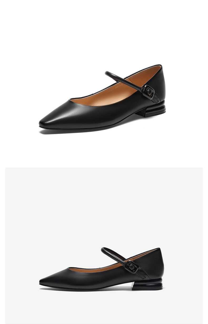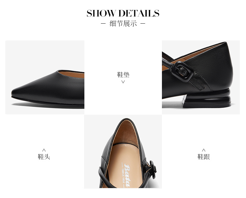 | 鞋头款式:尖头 | 鞋底材质:橡胶底 | 鞋面图案:纯色 | 鞋跟形状:粗跟 | 鞋面材质:羊皮革 |