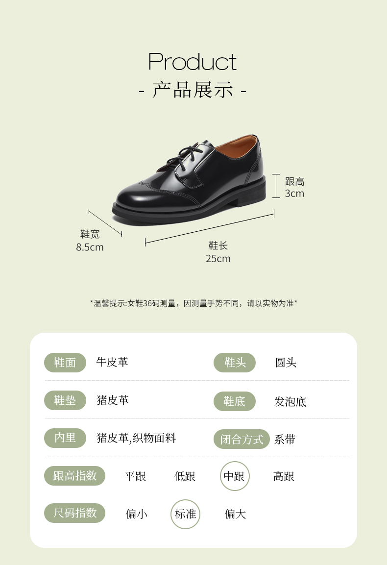 | 配跟:无 | 上市时间:2024年冬季 | 鞋类流行款式:牛津鞋 | 鞋头款式:圆头 | 鞋面图案:纯色 |