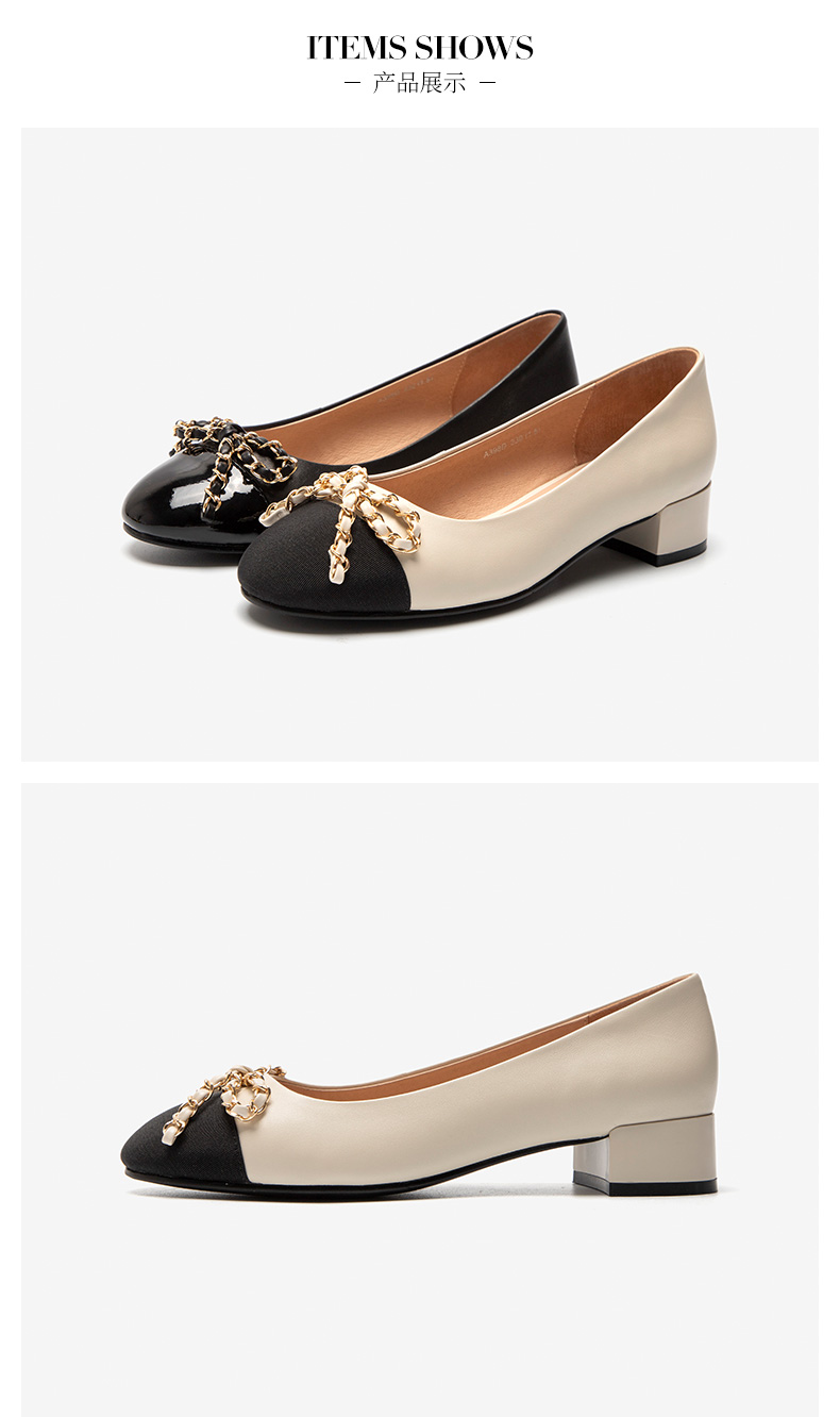 | 鞋头款式:圆头 | 鞋底材质:橡胶底 | 鞋面图案:拼色 | 鞋跟形状:粗跟 | 鞋面材质:牛皮革羊皮革 |