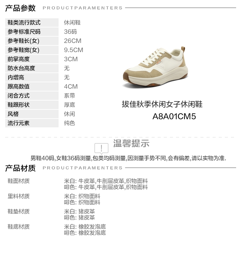 | 鞋跟形状:厚底 | 参考鞋长(女):26CM | 流行元素:纯色 | 参考鞋宽(女):9.5CM | 风格:休闲 |