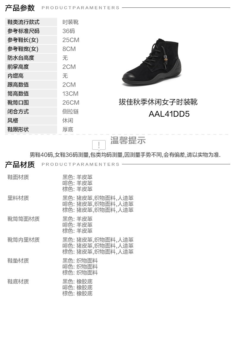 | 筒高数值:13CM | 性别:女子 | 靴筒筒面材质:羊皮革 | 里料材质:人造革织物面料猪皮革 | 制鞋工艺:胶贴皮鞋 |