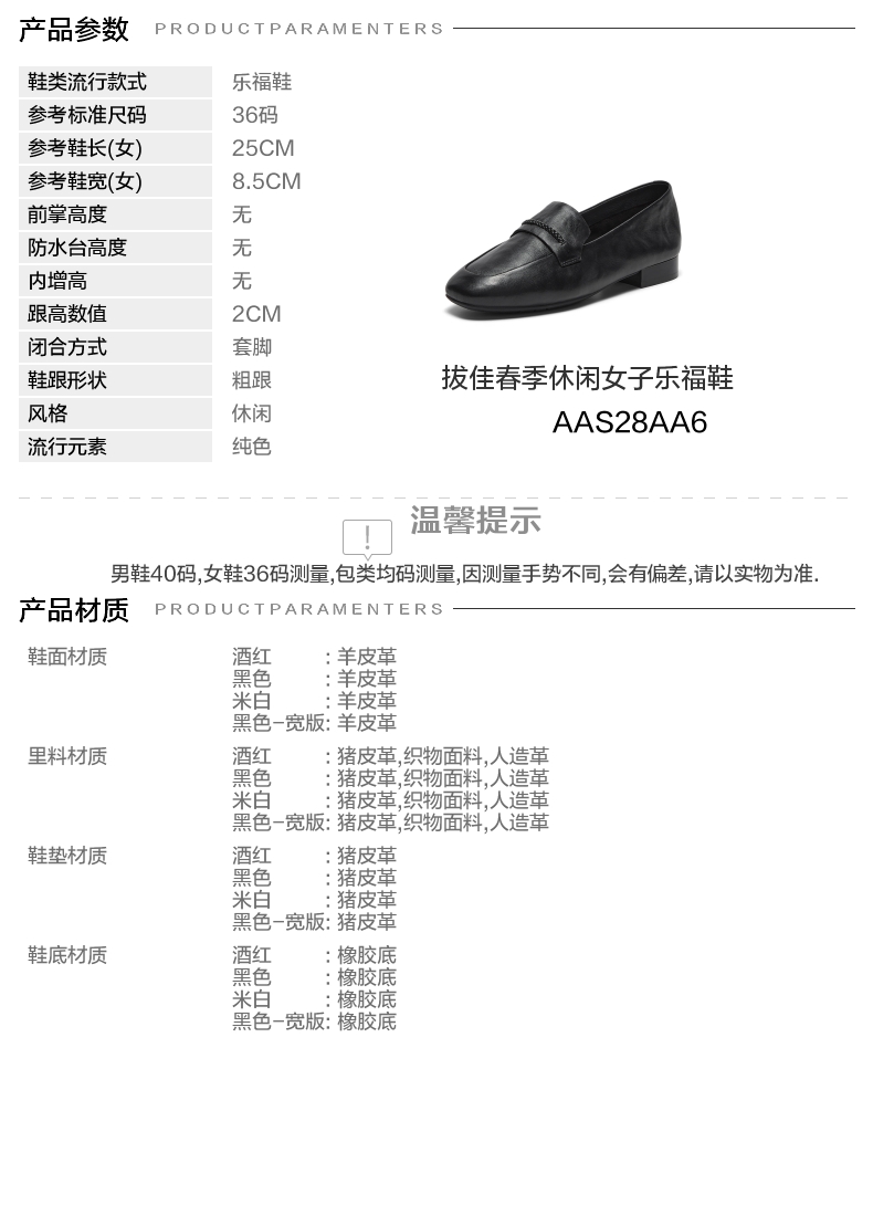 | 配跟:无 | 上市时间:2026年春季 | 鞋类流行款式:乐福鞋 | 鞋头款式:圆头 | 鞋面图案:纯色 |