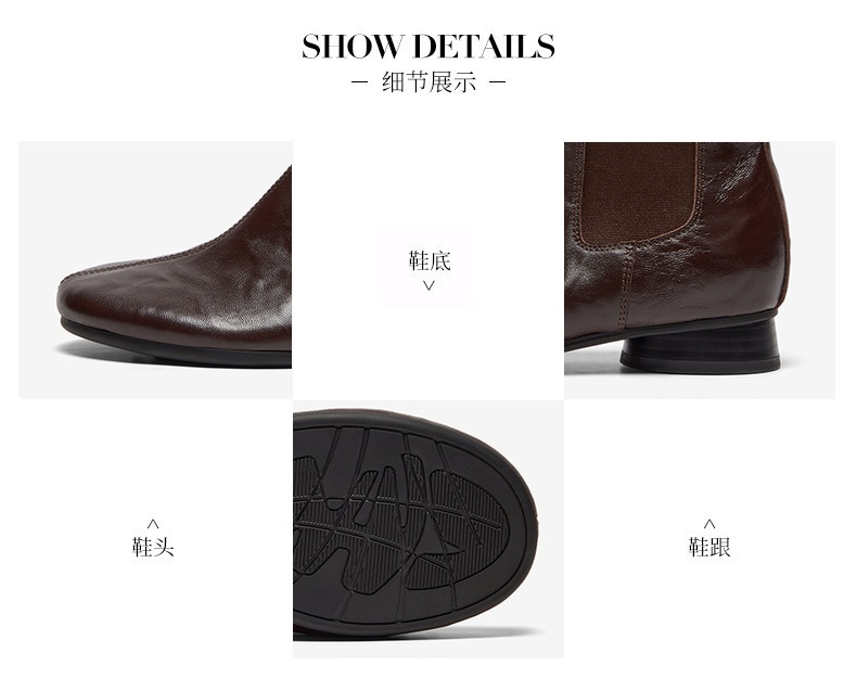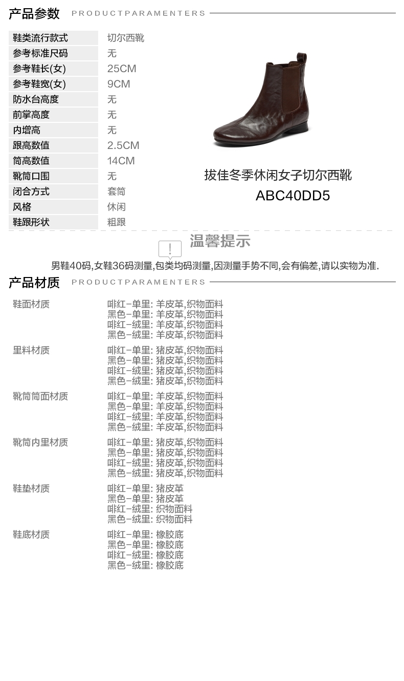 | 帮面材质:羊皮 | 配跟:无 | 上市时间:2025年冬季 | 鞋类流行款式:切尔西靴 | 鞋头款式:圆头 |