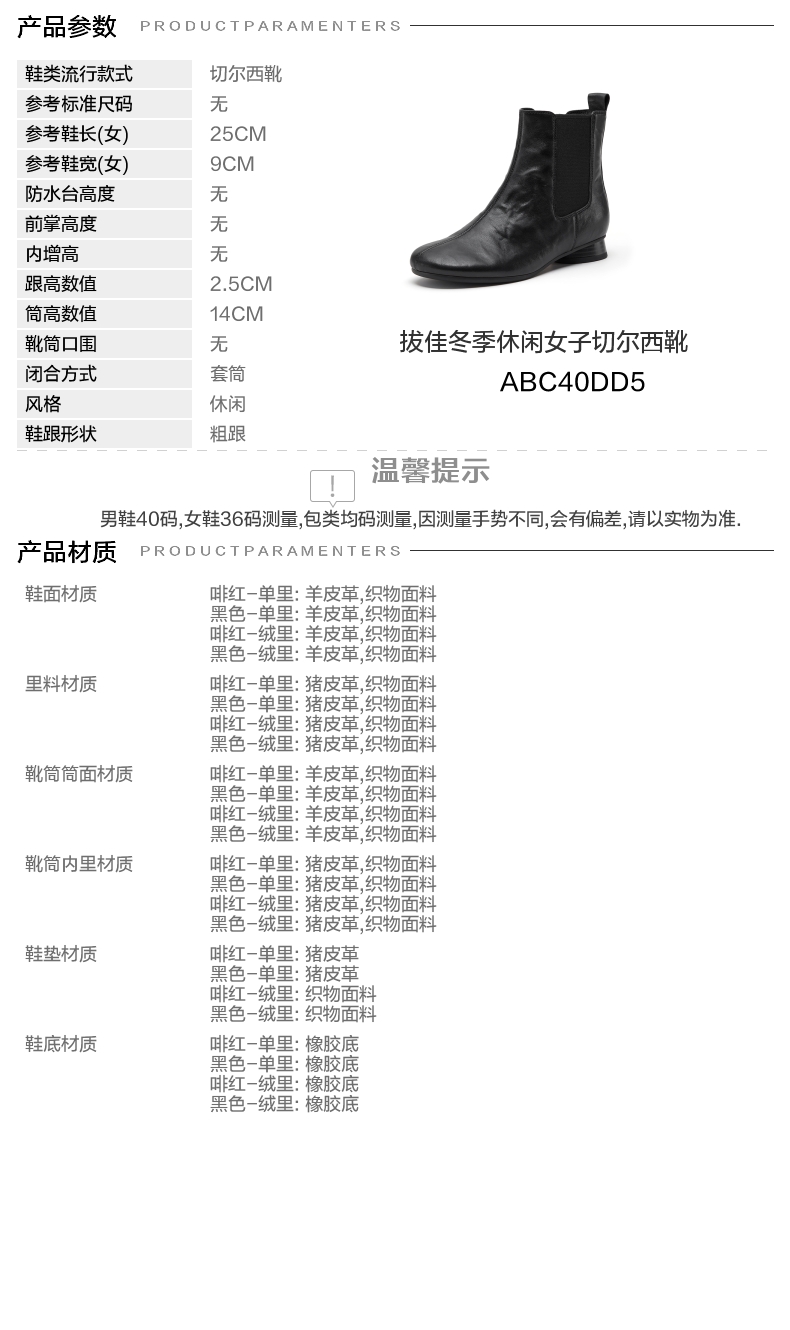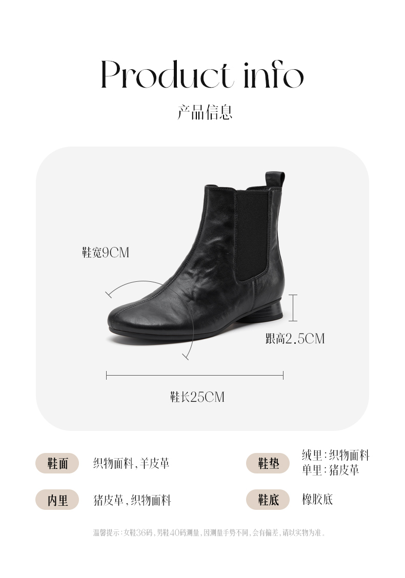 | 帮面材质:羊皮 | 配跟:无 | 上市时间:2025年冬季 | 鞋类流行款式:切尔西靴 | 鞋头款式:圆头 |
