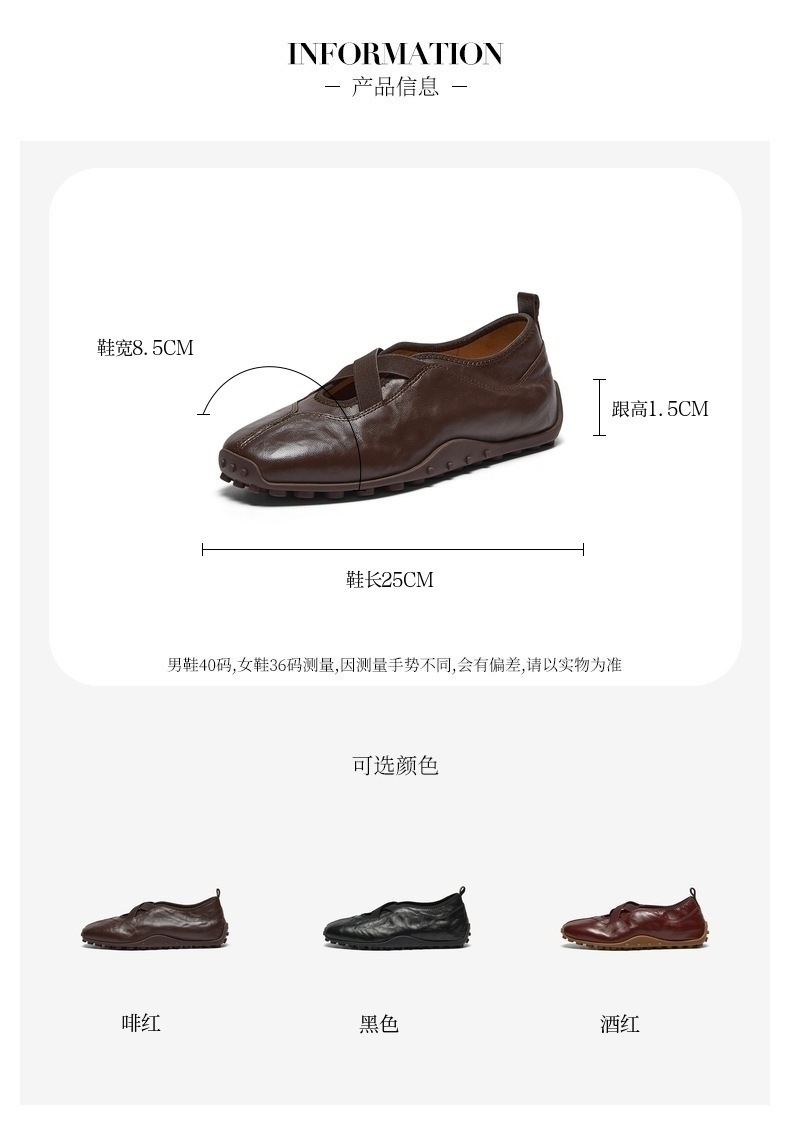 | 鞋帮:低帮 | 鞋底材质:橡胶底 | 内增高:无 | 鞋面材质:羊皮革 | 闭合方式:套脚 |