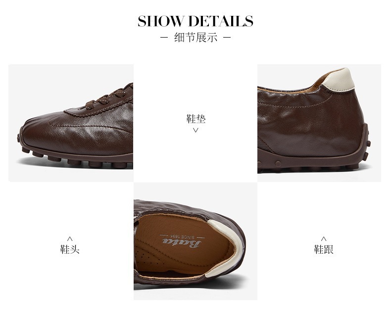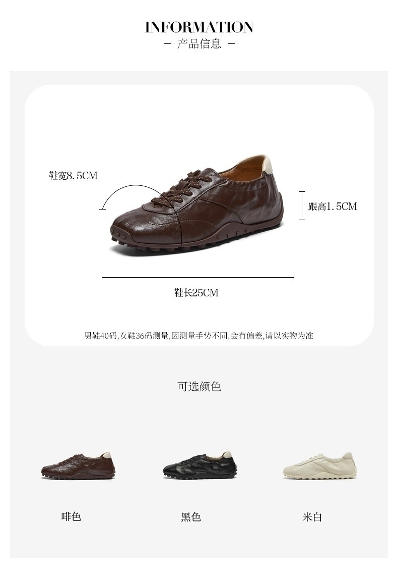 | 鞋帮:低帮 | 鞋底材质:橡胶底 | 内增高:无 | 鞋面材质:羊皮革 | 闭合方式:系带 |