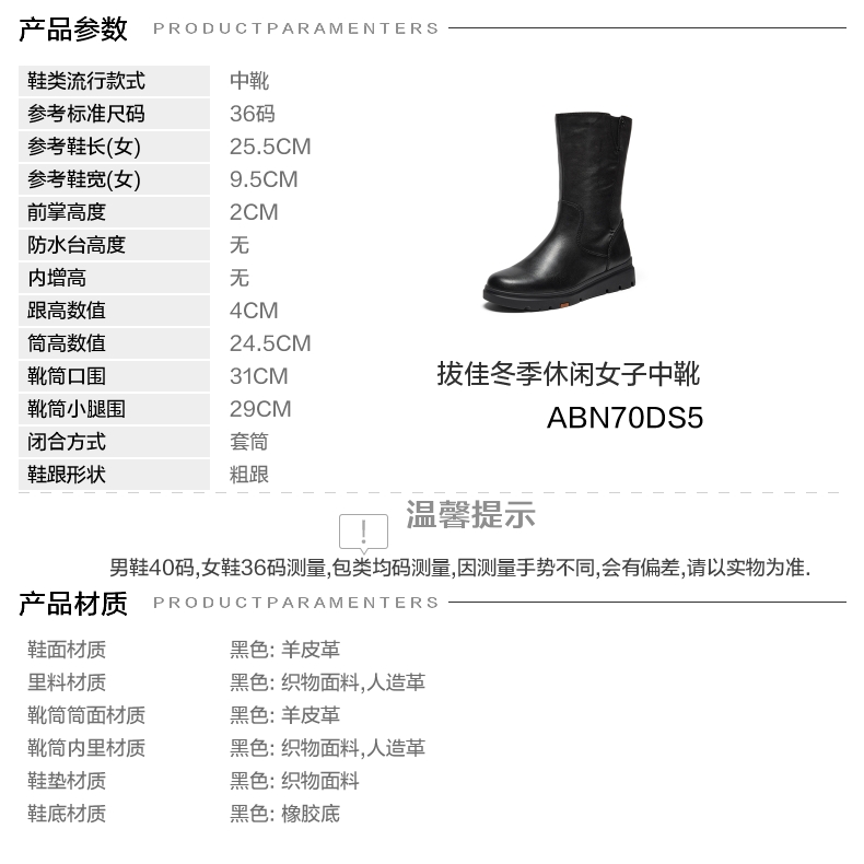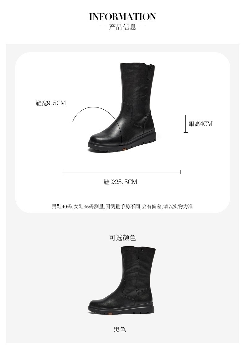 | 风格:休闲 | 色系:黑色 | 跟高数值:4CM | 性别:女子 | 筒高数值:24.5CM |