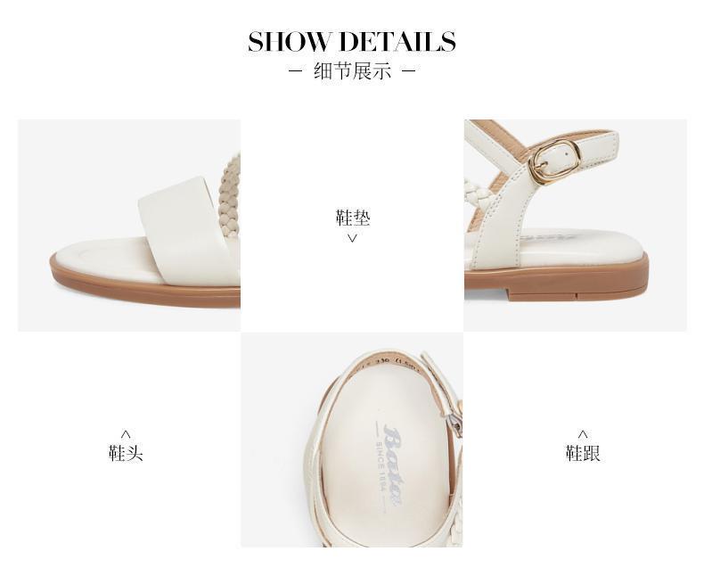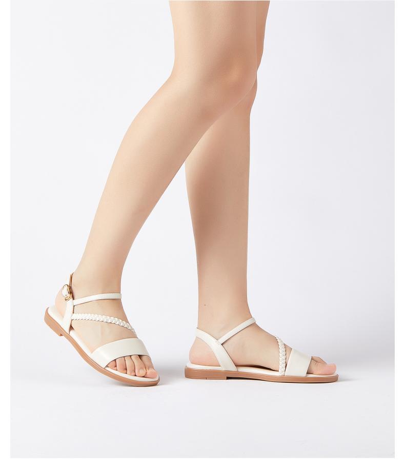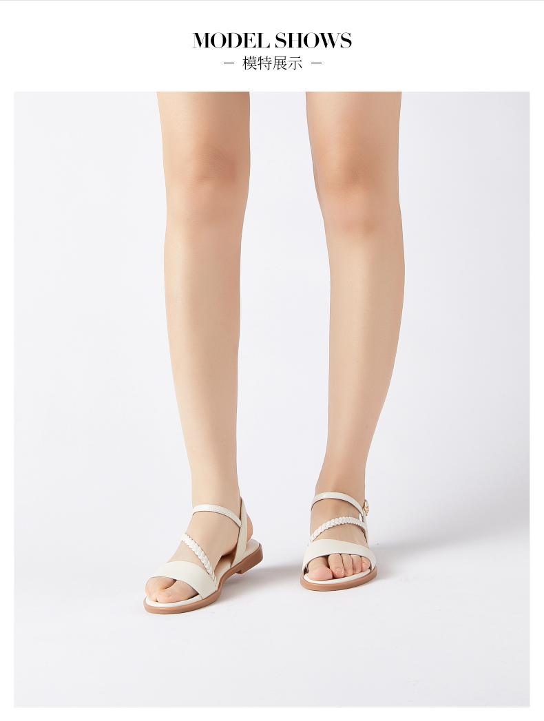 | 鞋头款式:露趾 | 鞋底材质:橡胶底 | 鞋面图案:纯色 | 鞋跟形状:平跟 | 鞋面材质:人造革羊皮革 |