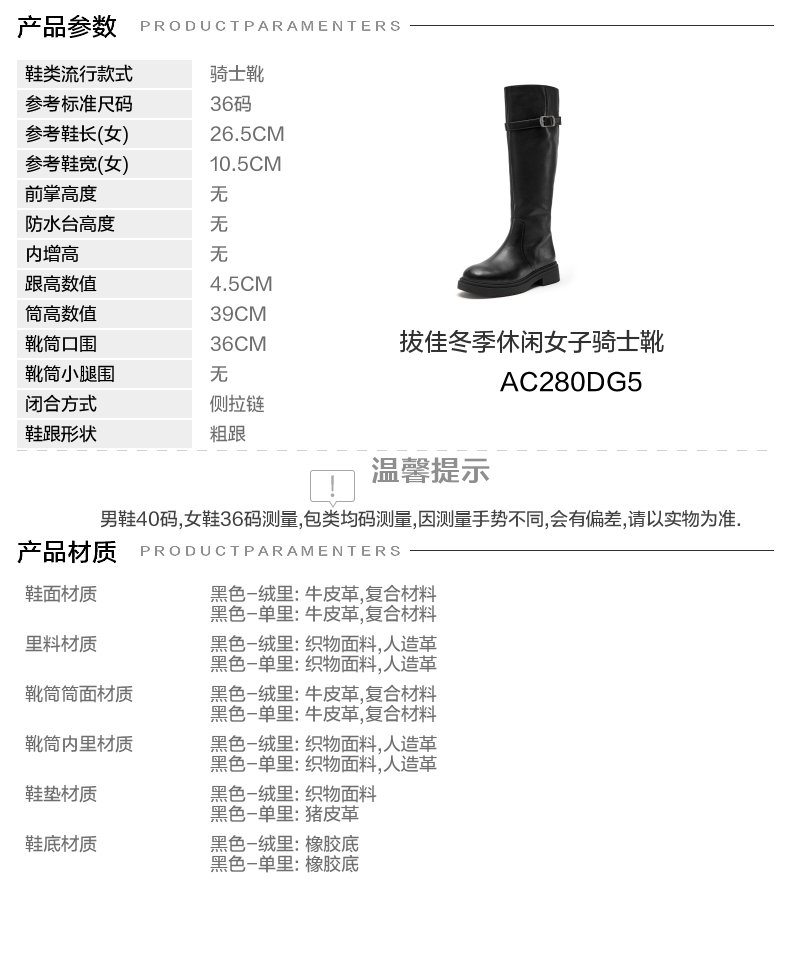 | 配跟:无 | 靴筒口围:36CM | 上市时间:2025年冬季 | 鞋类流行款式:骑士靴 | 鞋头款式:圆头 |