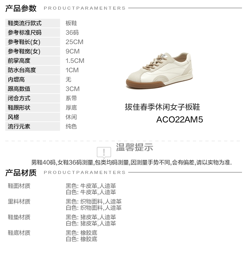 | 鞋跟形状:厚底 | 流行元素:纯色 | 参考鞋长(女):25CM | 参考鞋宽(女):9CM | 风格:休闲 |