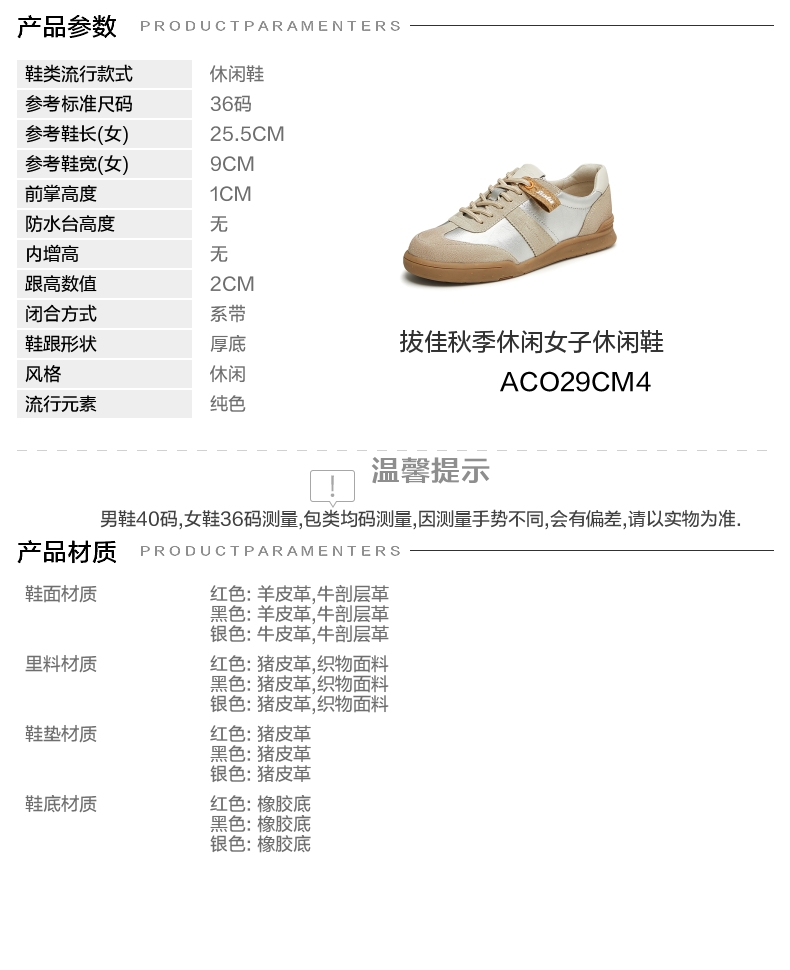 | 鞋跟形状:厚底 | 流行元素:纯色 | 参考鞋长(女):25.5CM | 参考鞋宽(女):9CM | 风格:休闲 |