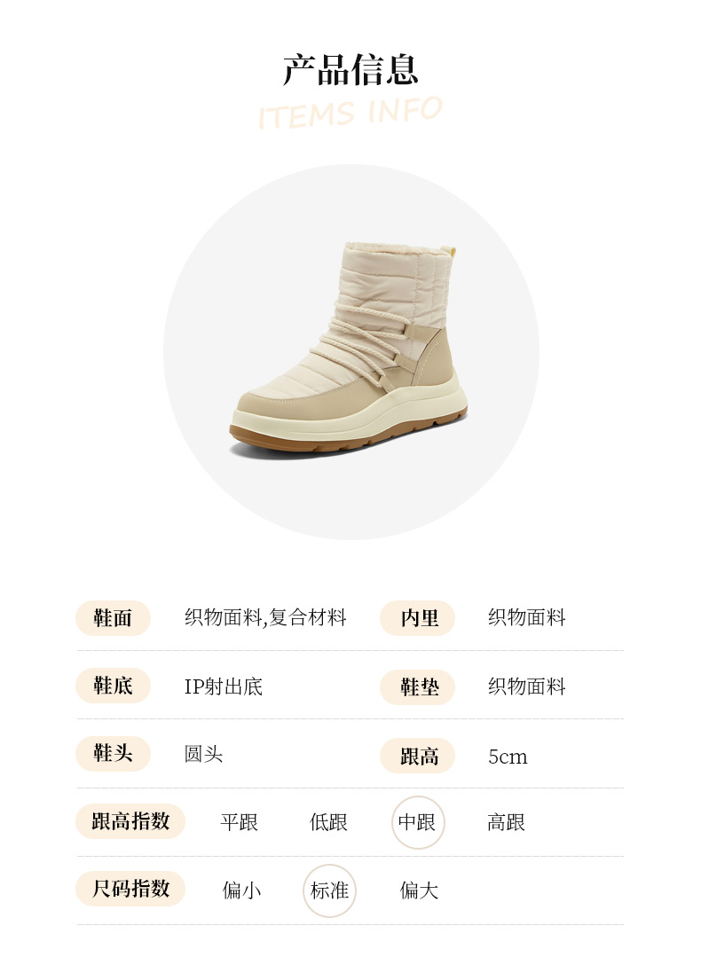 | 帮面材质:复合材料 | 配跟:无 | 靴筒口围:31.5CM | 上市时间:2025年冬季 | 鞋类流行款式:雪地靴 |