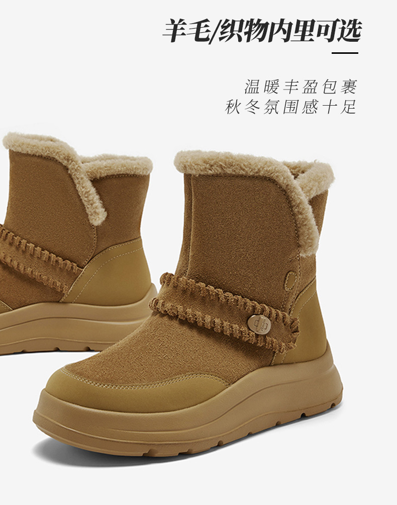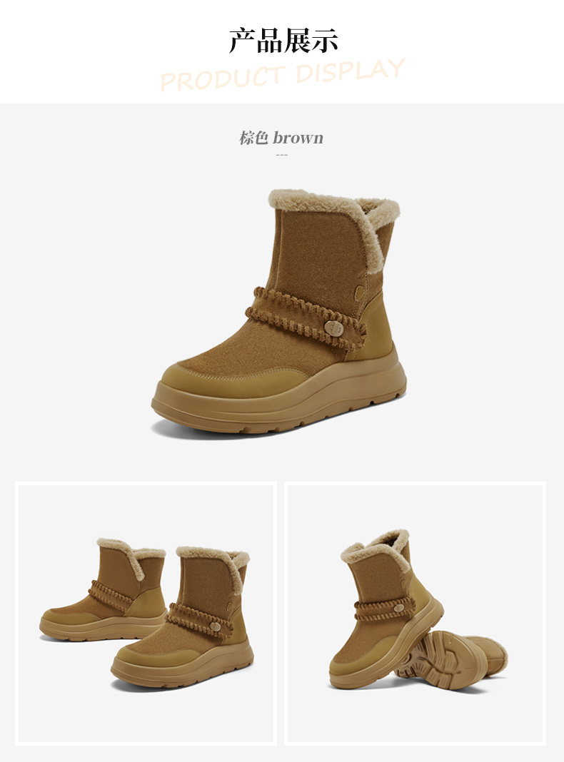 | 帮面材质:牛剖层革 | 配跟:无 | 靴筒口围:33CM | 上市时间:2025年冬季 | 鞋类流行款式:雪地靴 |