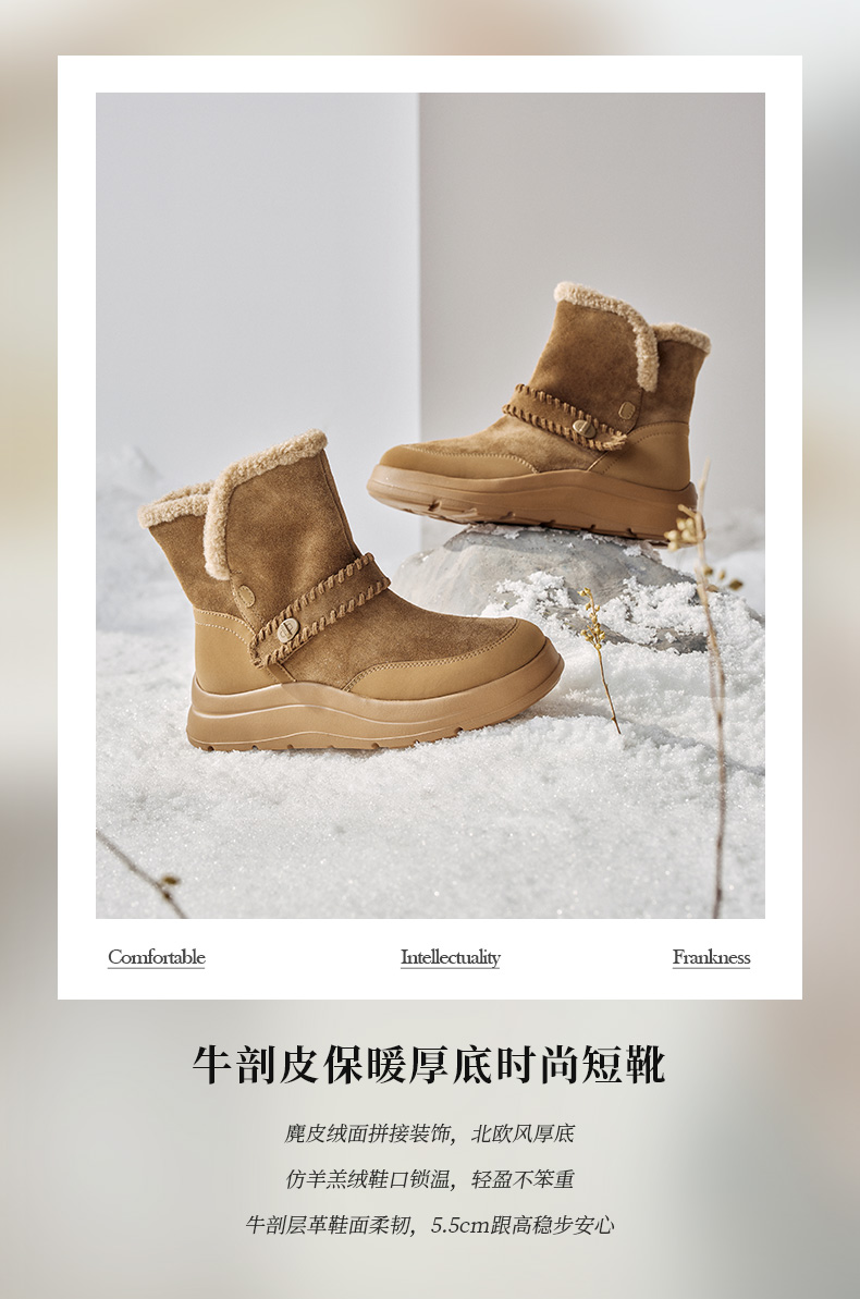 | 帮面材质:牛剖层革 | 配跟:无 | 靴筒口围:33CM | 上市时间:2025年冬季 | 鞋类流行款式:雪地靴 |