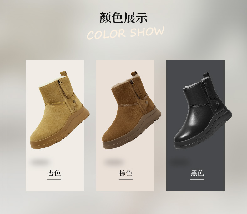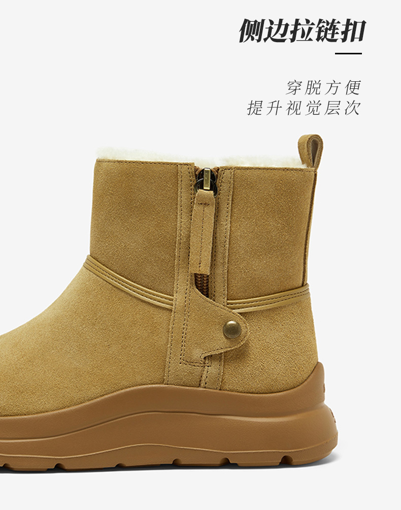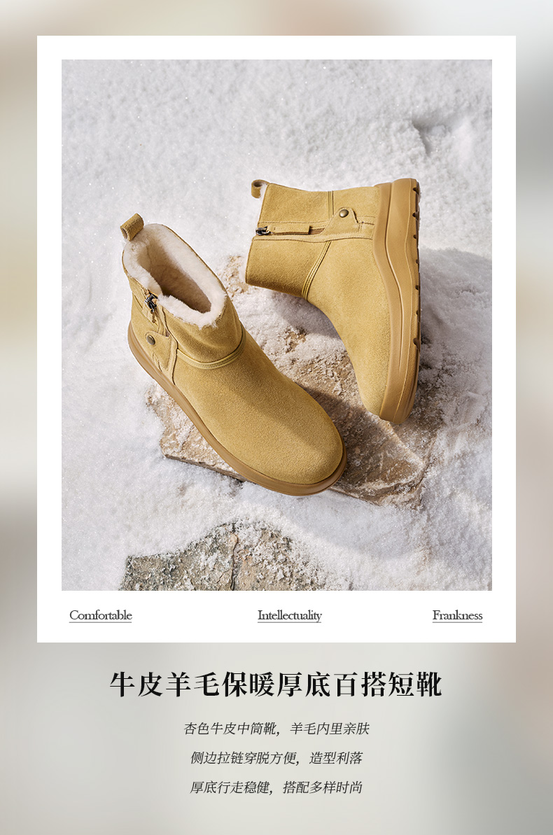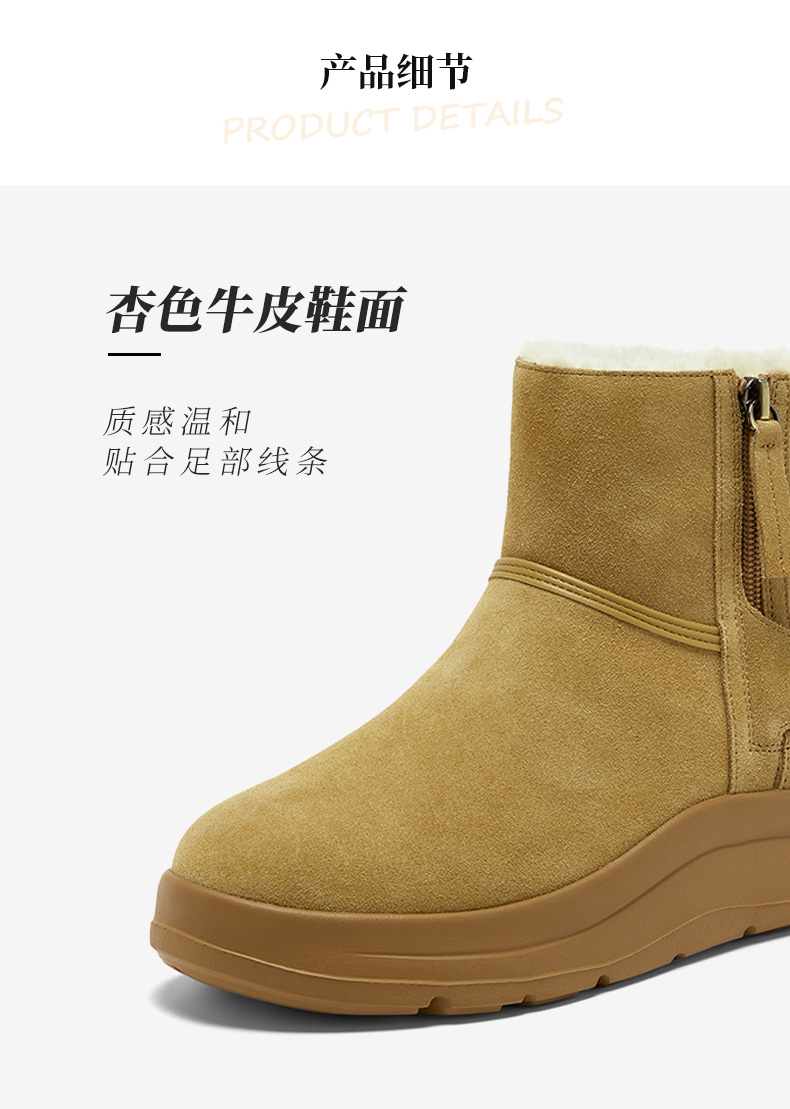 | 帮面材质:牛皮革 | 配跟:无 | 靴筒口围:31CM | 上市时间:2025年冬季 | 鞋类流行款式:雪地靴 |