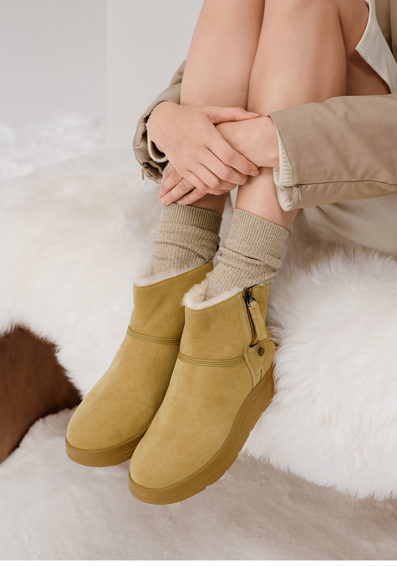 | 鞋底材质:IP射出底 | 靴筒内里材质:羊毛皮 | 内增高:无 | 鞋面材质:牛皮革 | 闭合方式:侧拉链 |