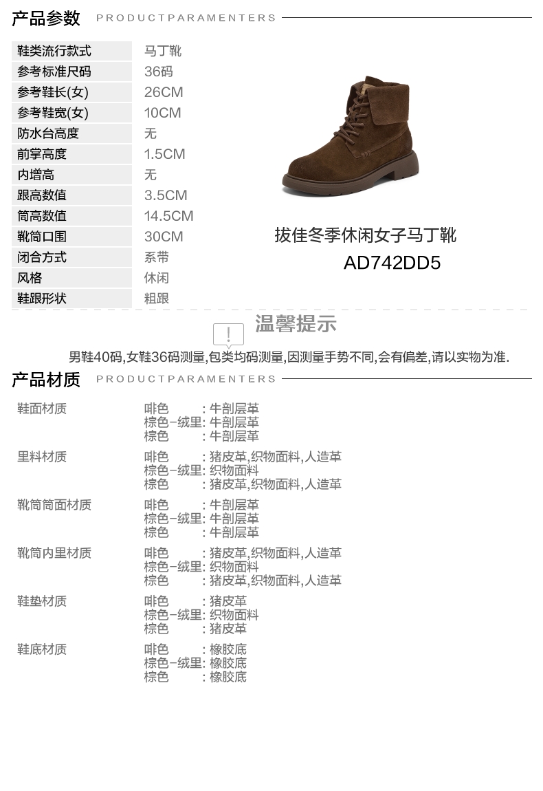 | 参考鞋宽(女):10CM | 风格:休闲 | 色系:咖啡色 | 跟高数值:3.5CM | 筒高数值:14.5CM |