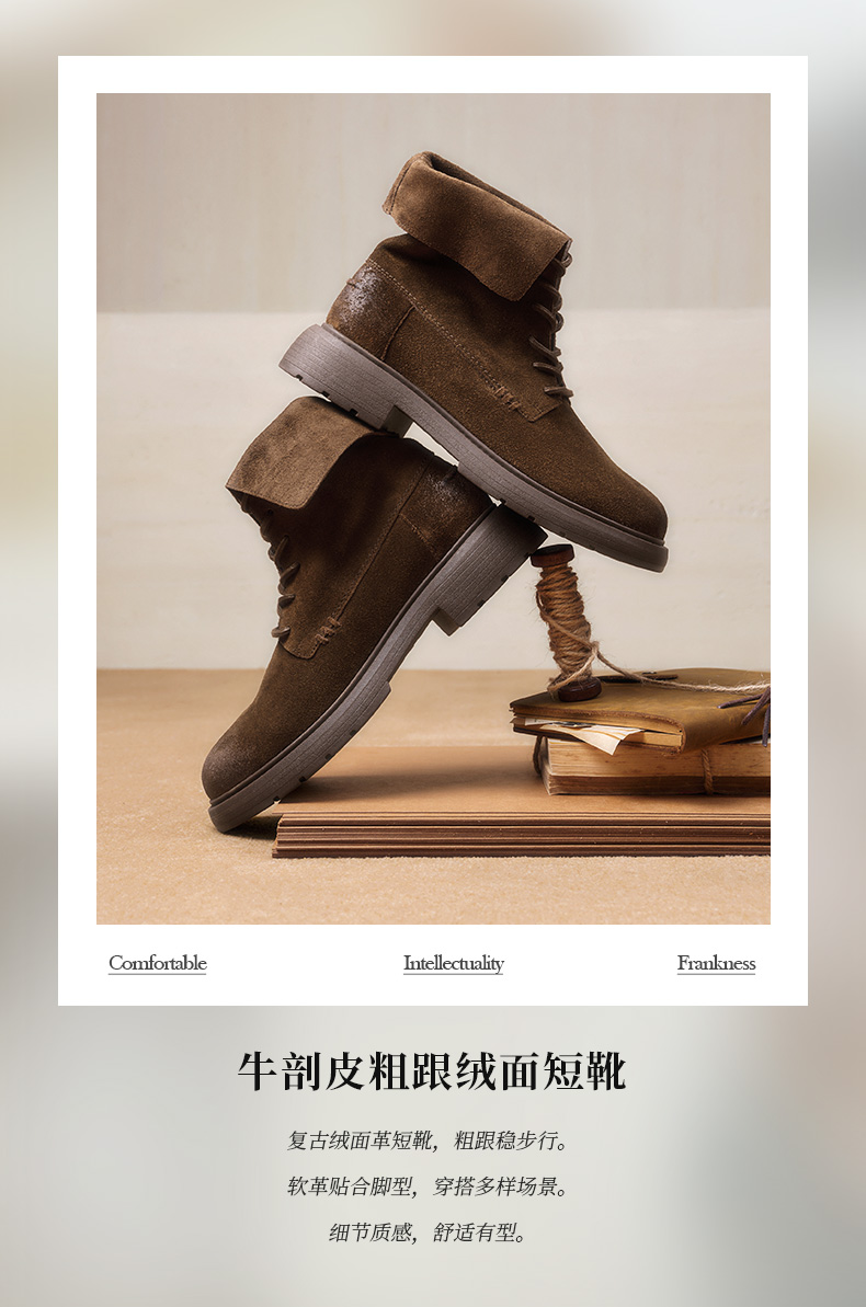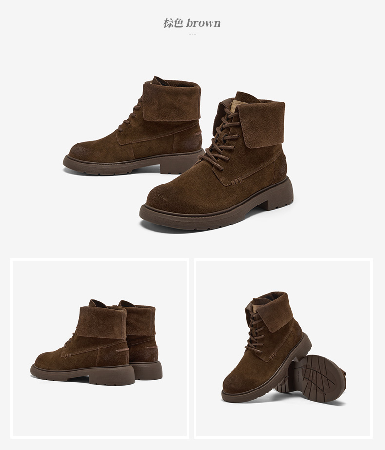 | 鞋底材质:橡胶底 | 靴筒内里材质:猪皮革人造革织物面料 | 内增高:无 | 鞋面材质:牛剖层革 | 闭合方式:系带 |