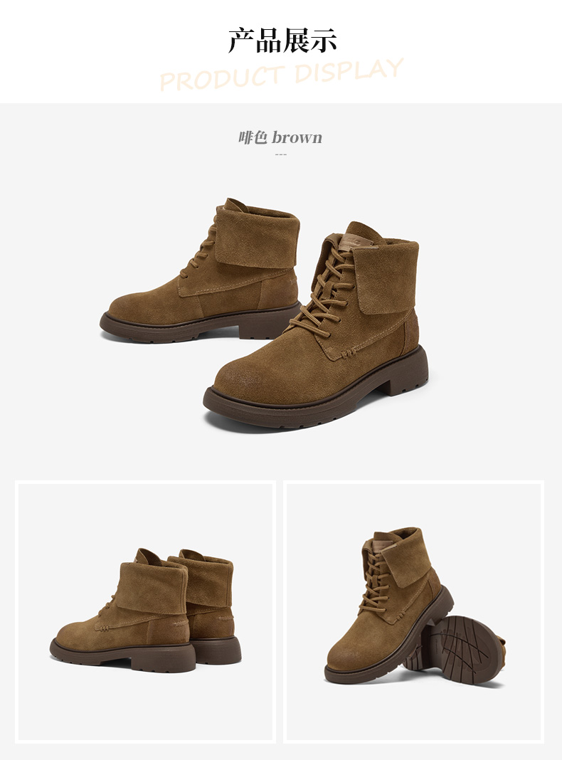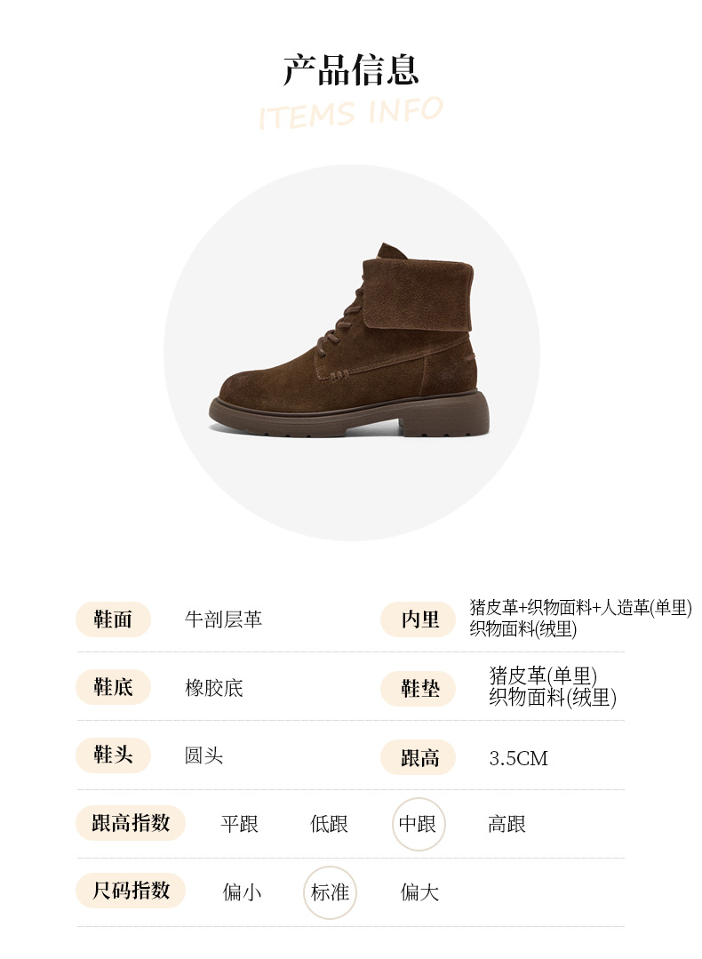 | 帮面材质:牛剖层革 | 配跟:无 | 靴筒口围:30CM | 上市时间:2025年冬季 | 鞋类流行款式:马丁靴 |