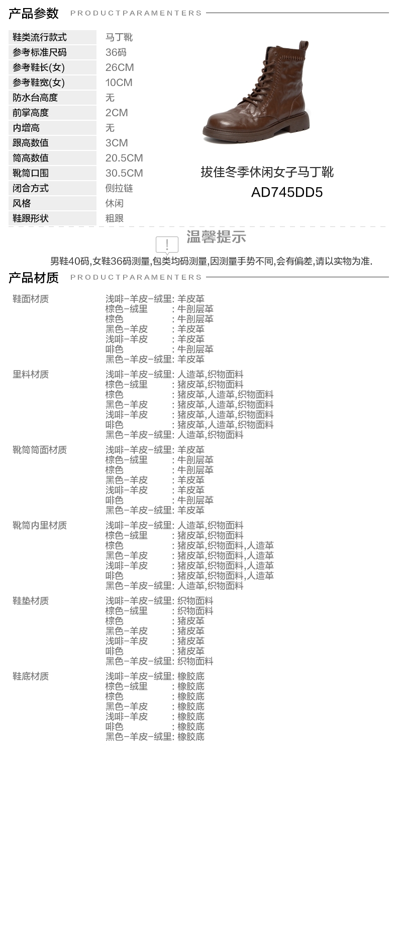 | 参考鞋宽(女):10CM | 风格:休闲 | 色系:咖啡色 | 跟高数值:3CM | 筒高数值:20.5CM |