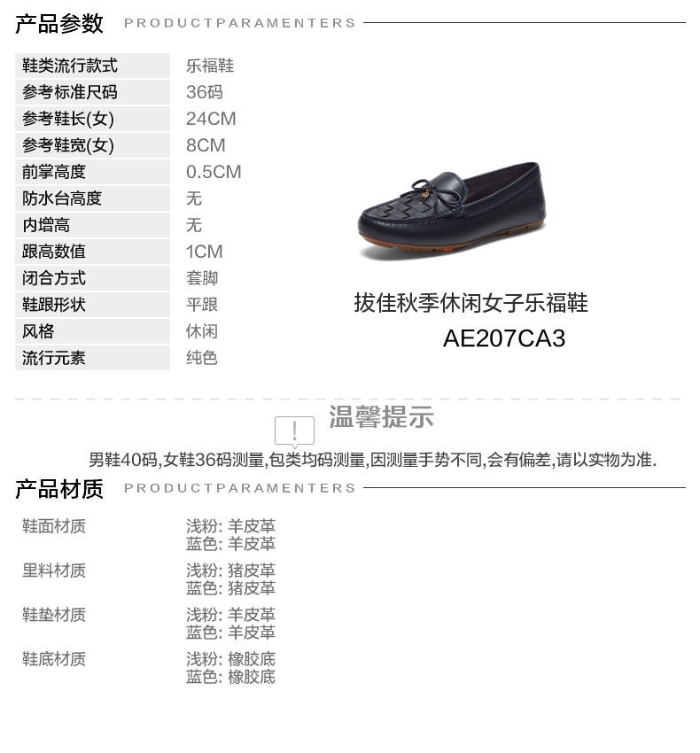 | 鞋垫材质:羊皮革 | 款式季节:秋季 | 前掌高度:0.5CM | 皮质特征:软面皮 | 防水台高度:无 |