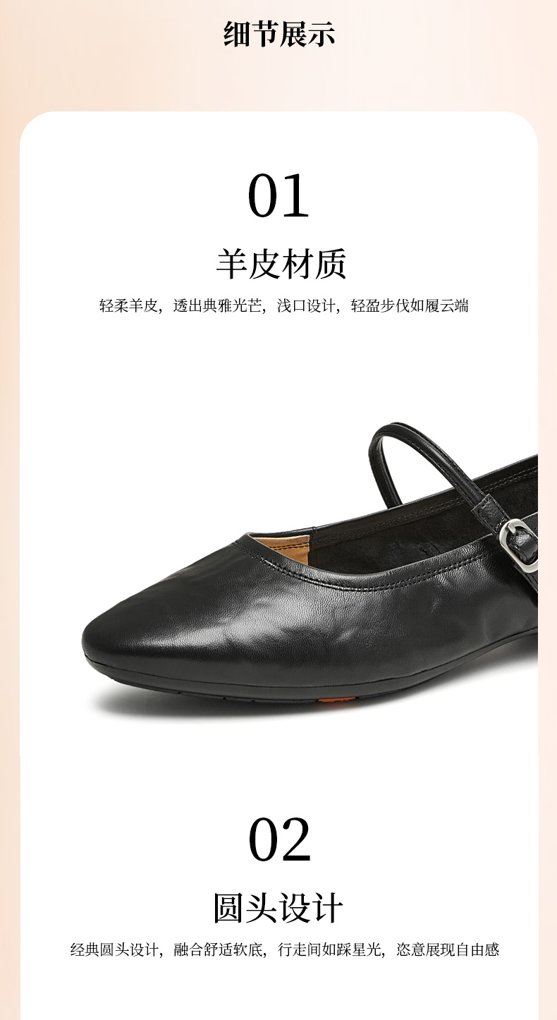 | 鞋类流行款式:浅口鞋 | 鞋头款式:圆头 | 跟高范围:低跟鞋(小于3CM) | 鞋面图案:纯色 | 鞋跟形状:平跟 |