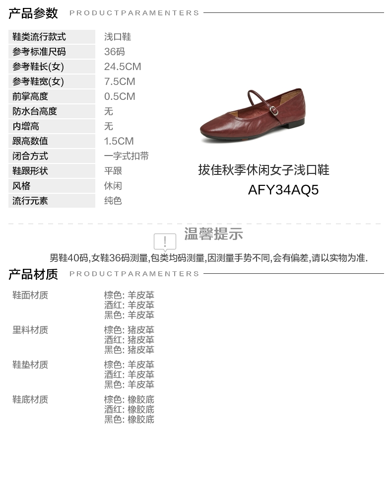 | 所在区域:电子商务 | 配跟:无 | 开口深度:浅口 | 风格分类:时装玛丽珍 | 上市时间:2025年春季 |