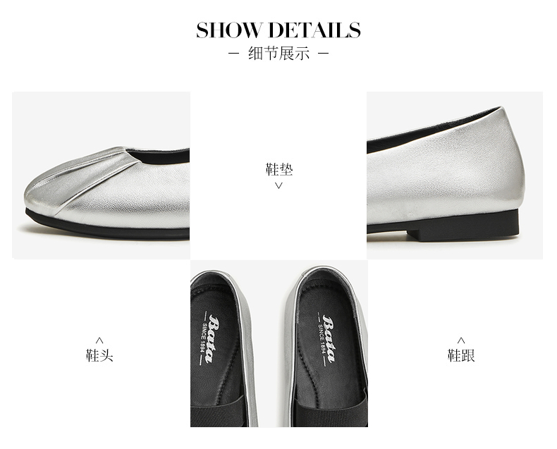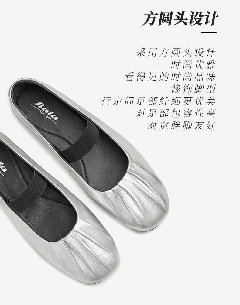 • Bata浅口单鞋女2024春商场羊皮优雅通勤百搭甜美芭蕾舞鞋AFZ36AQ4