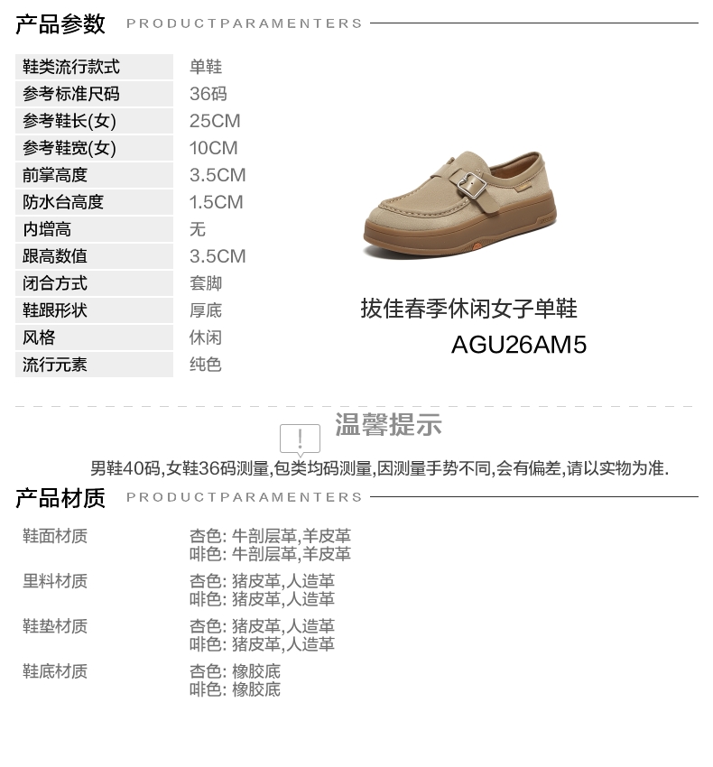 | 前掌高度:3.5CM | 皮质特征:软面皮 | 销售季:2025年春季 | 防水台高度:1.5CM |