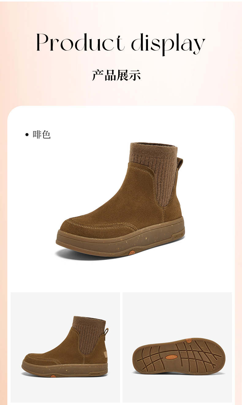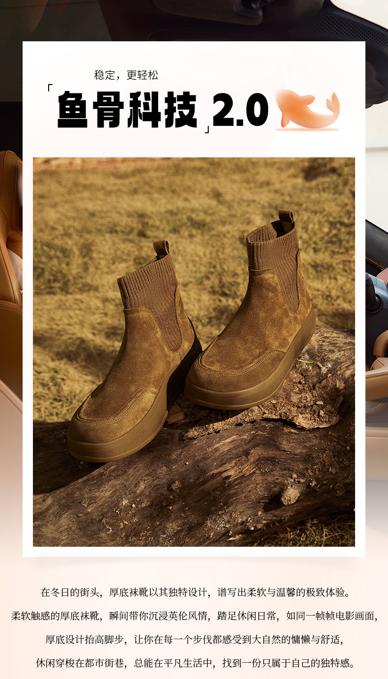 | 帮面材质:牛剖层革 | 配跟:无 | 靴筒口围:25CM | 上市时间:2024年冬季 | 鞋类流行款式:袜靴 |