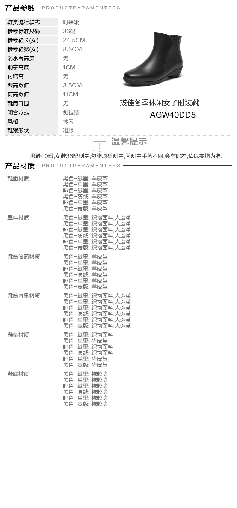 | 风格:休闲 | 色系:黑色 | 跟高数值:3.5CM | 筒高数值:11CM | 性别:女子 |