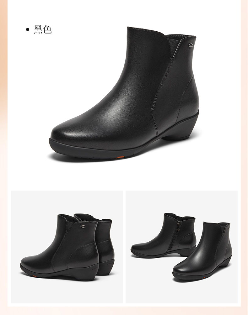 鞋底材质:橡胶底 靴筒内里材质:人造革织物面料 内增高:无 鞋面材质:羊皮革 闭合方式:侧拉链