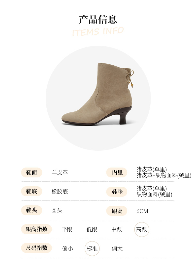 | 参考鞋宽(女):8CM | 风格:休闲 | 鞋面内里材质:猪皮革 | 色系:杏色 | 跟高数值:6CM |