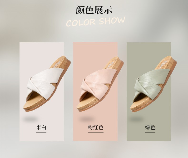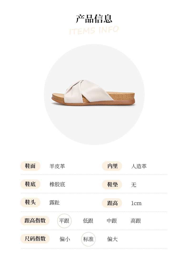 | 皮质特征:羊皮革 | 前掌高度:0.5CM | 防水台高度:无 | 鞋类流行款式:拖鞋 |