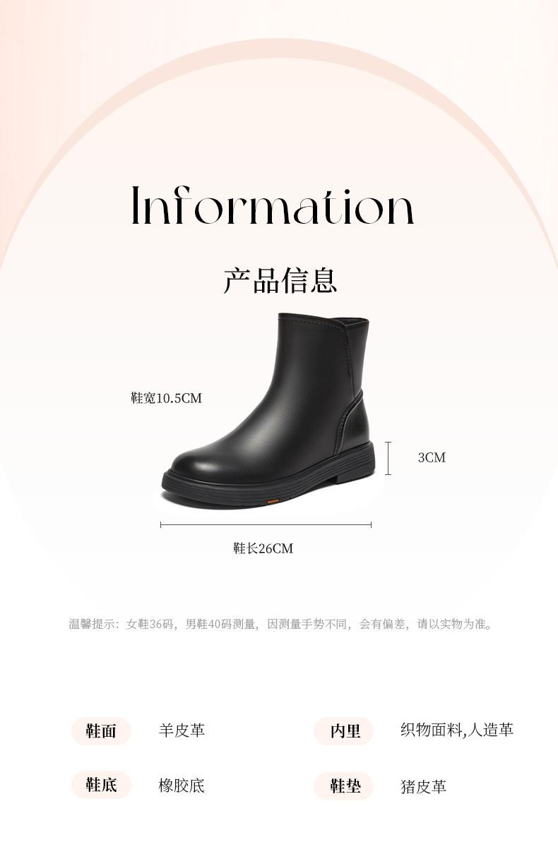 | 款式季节:冬季 | 前掌高度:2CM | 皮质特征:软面皮 | 防水台高度:无 |