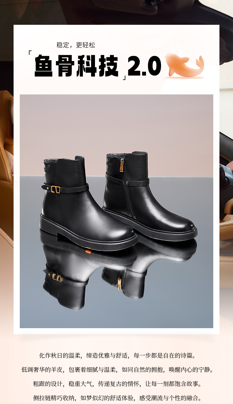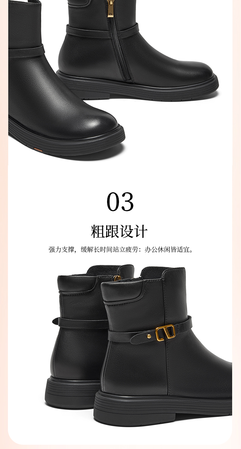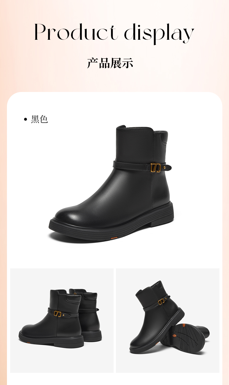 | 鞋底材质:橡胶底 | 靴筒内里材质:织物面料猪皮革 | 内增高:无 | 鞋面材质:羊皮革 | 闭合方式:侧拉链 |