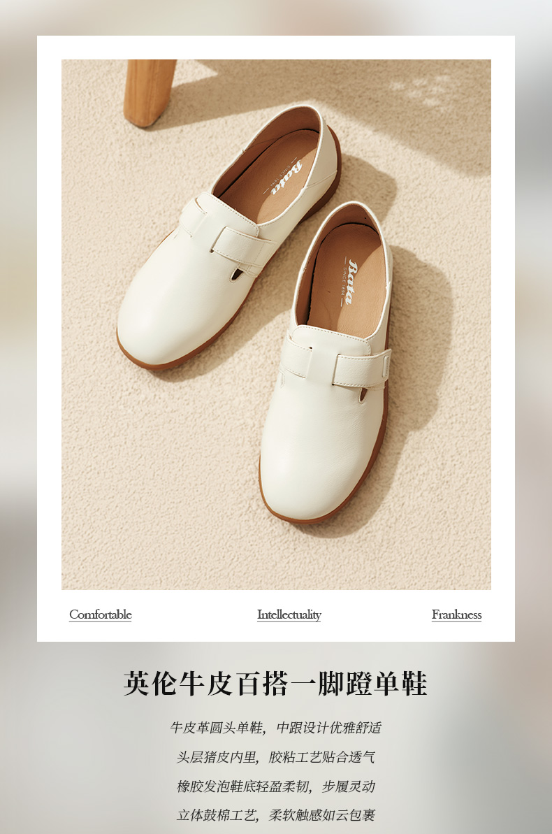| 鞋跟形状:平跟 | 鞋面材质:牛剖层革 | 流行元素:纯色 | 参考鞋长(女):24.5CM | 参考鞋宽(女):8.5CM |