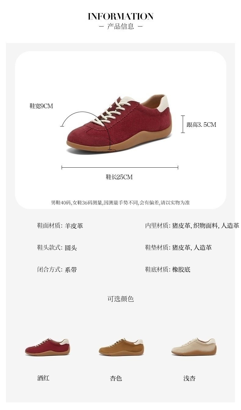 | 鞋帮:低帮 | 鞋底材质:橡胶底 | 内增高:无 | 鞋面材质:羊皮革 | 适用场合:日常休闲 |