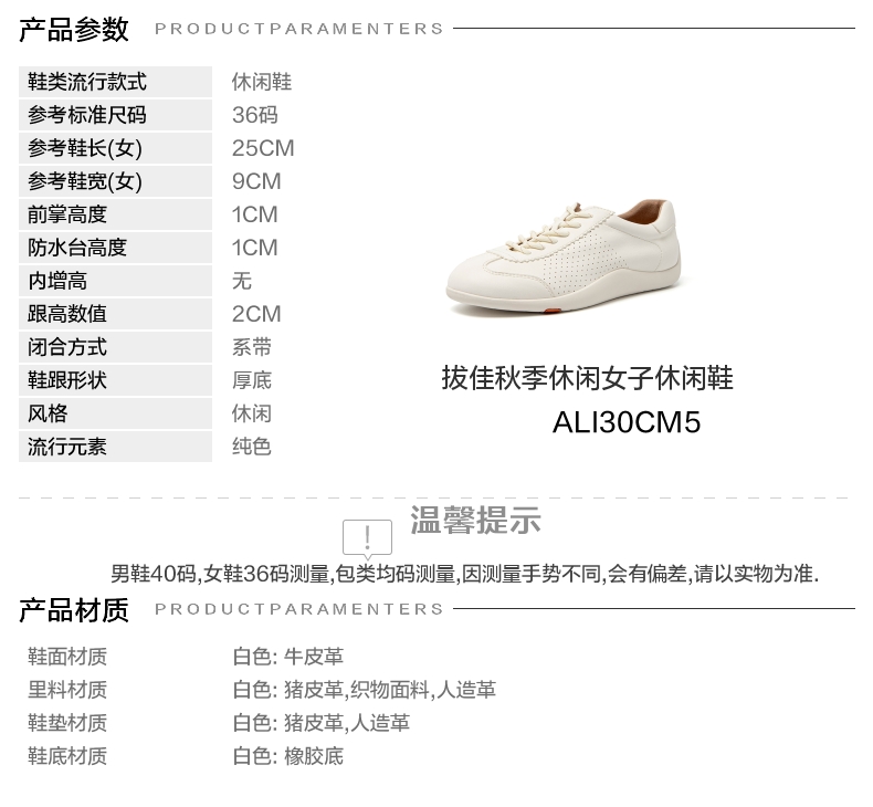 | 鞋跟形状:厚底 | 流行元素:纯色 | 参考鞋长(女):25CM | 参考鞋宽(女):9CM | 风格:休闲 |