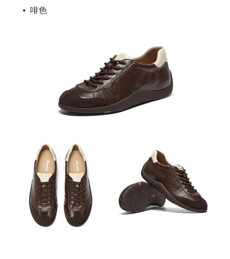 | 鞋帮:低帮 | 鞋底材质:橡胶底 | 内增高:无 | 鞋面材质:牛剖层皮革羊皮革 | 闭合方式:系带 |