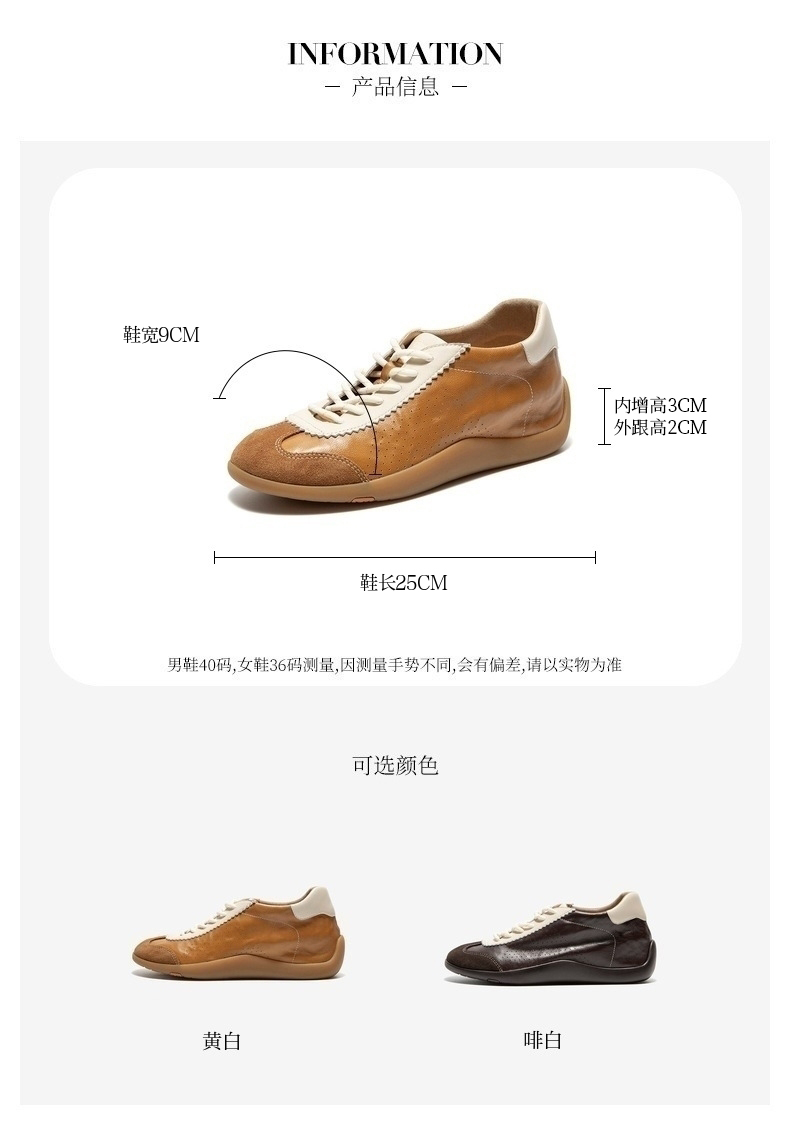 | 鞋帮:低帮 | 鞋底材质:橡胶底 | 内增高:3CM | 鞋面材质:牛剖层革羊皮革 | 闭合方式:系带 |