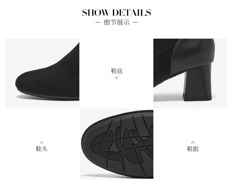 | 鞋头款式:圆头 | 鞋面图案:纯色 | 鞋跟形状:粗跟 | 参考鞋长(女):23.5CM | 流行元素:纯色 |