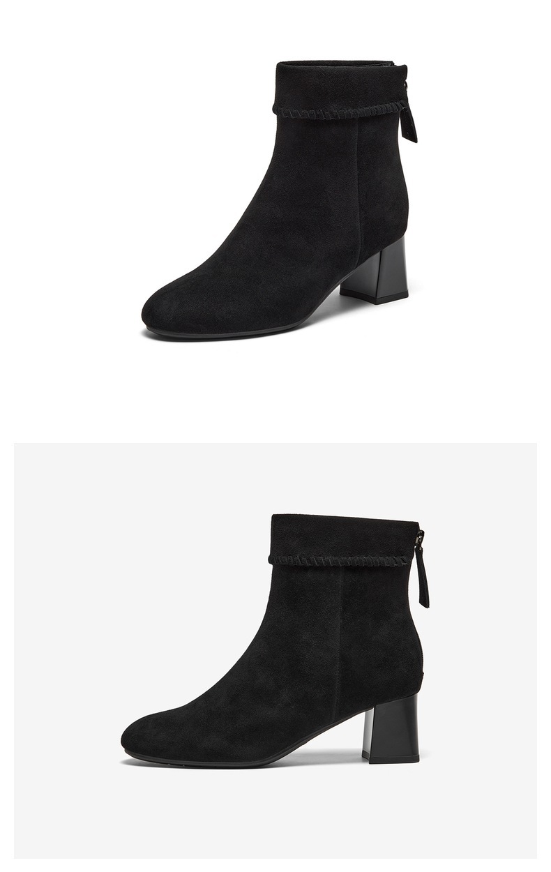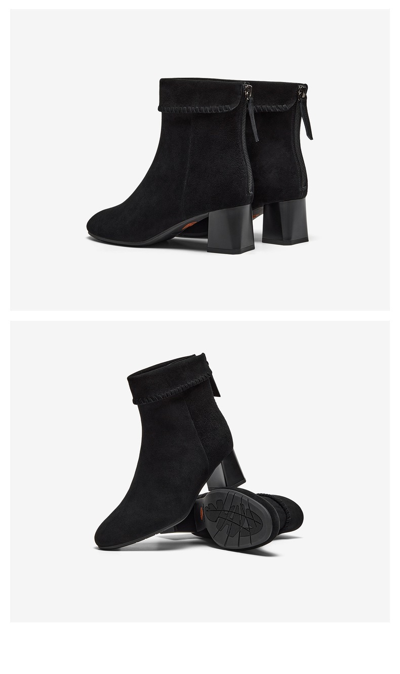 | 鞋底材质:橡胶底 | 靴筒内里材质:猪皮革 | 内增高:无 | 鞋面材质:羊皮革 | 闭合方式:后拉链 |