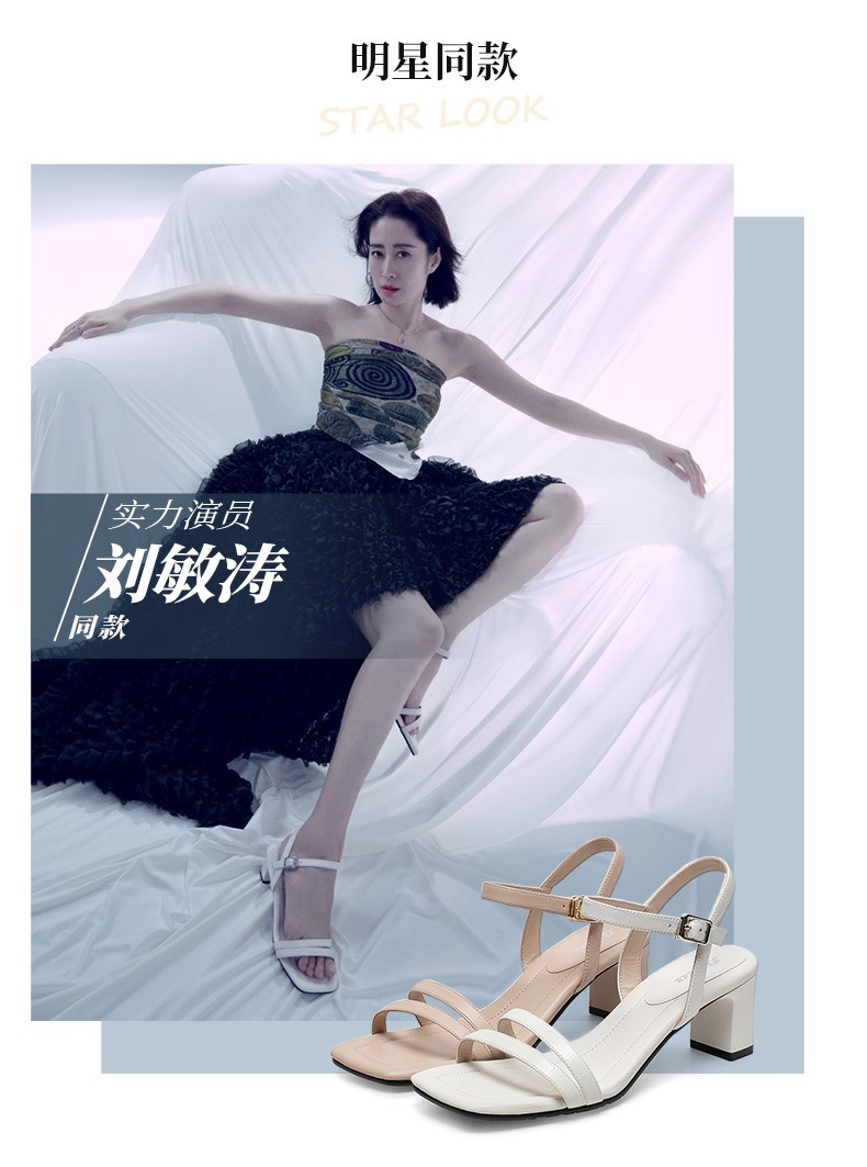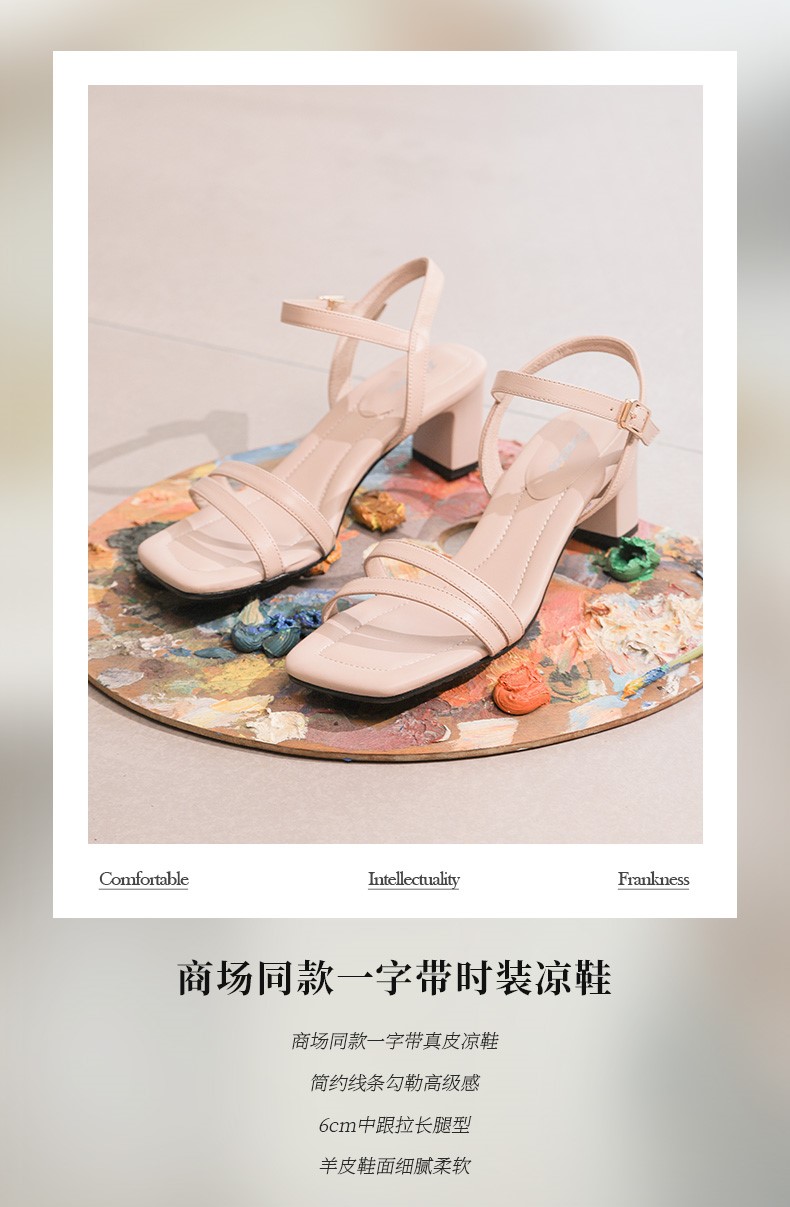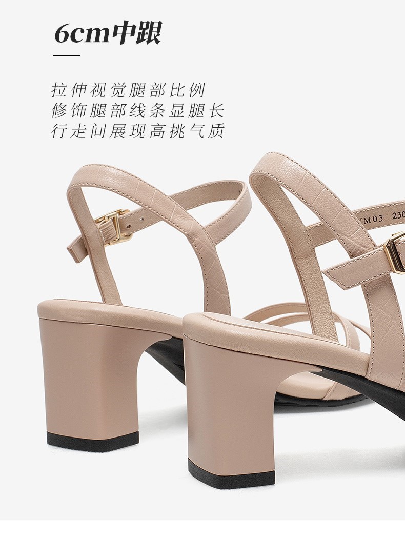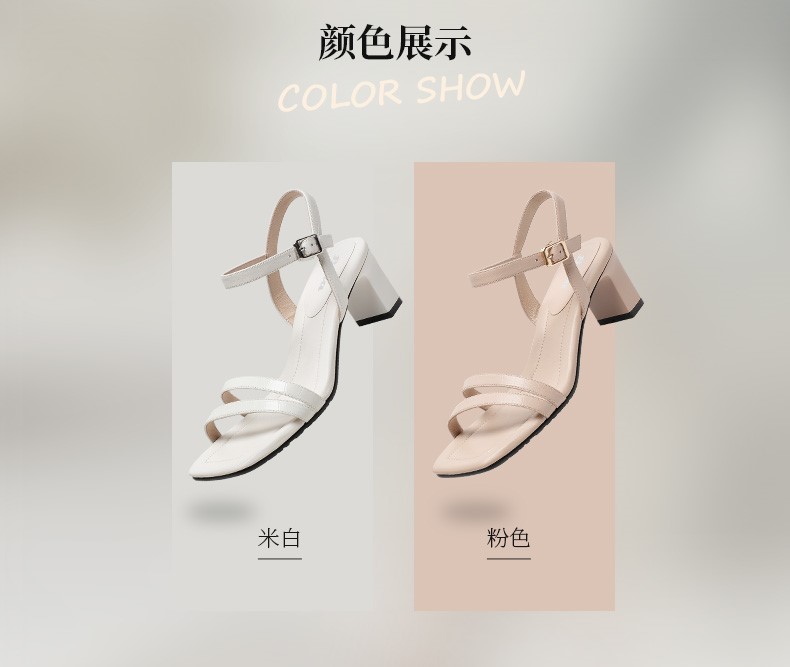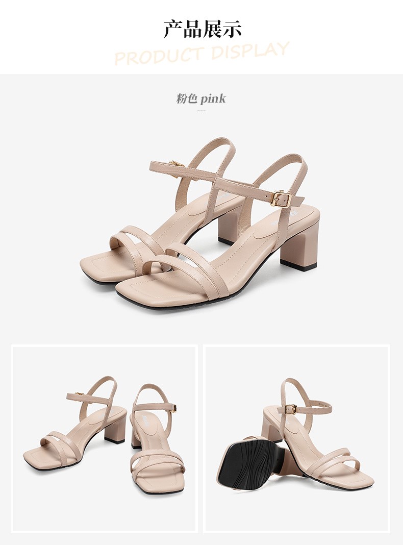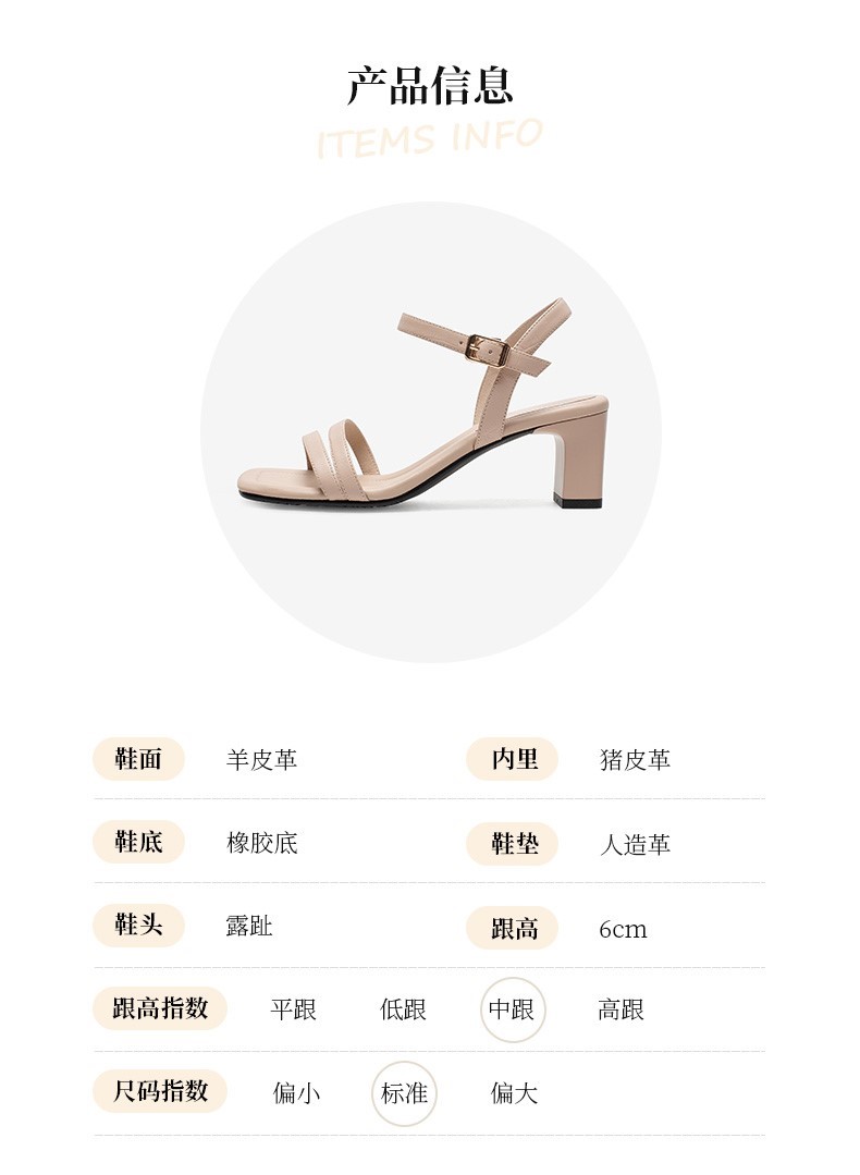 | 鞋头款式:露趾 | 鞋底材质:橡胶底 | 鞋面图案:纯色 | 鞋跟形状:粗跟 | 鞋面材质:羊皮革 |