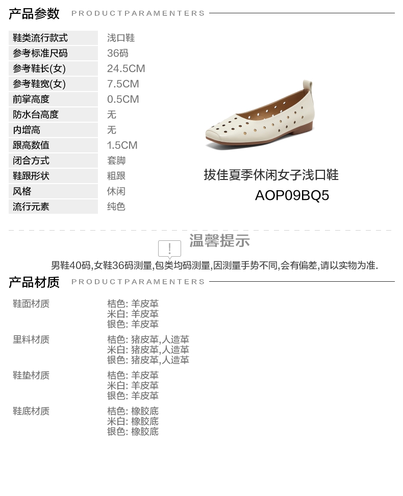 | 制鞋工艺:胶贴皮鞋 | 款式季节:夏季 | 鞋垫材质:羊皮革 | 渠道划分:电商专销 | 前掌高度:0.5CM |