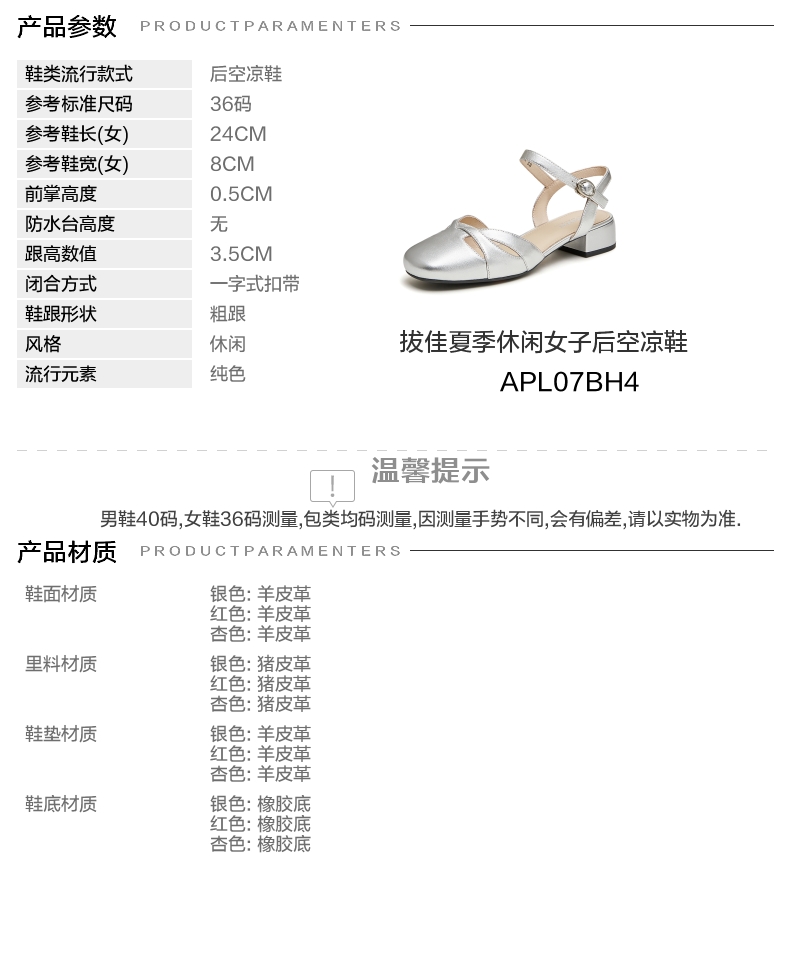 | 款式季节:夏季 | 渠道划分:电商专销 | 前掌高度:0.5CM | 皮质特征:软面皮 | 销售季:2024年夏季 |