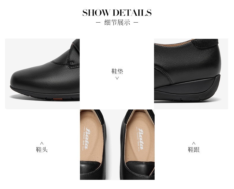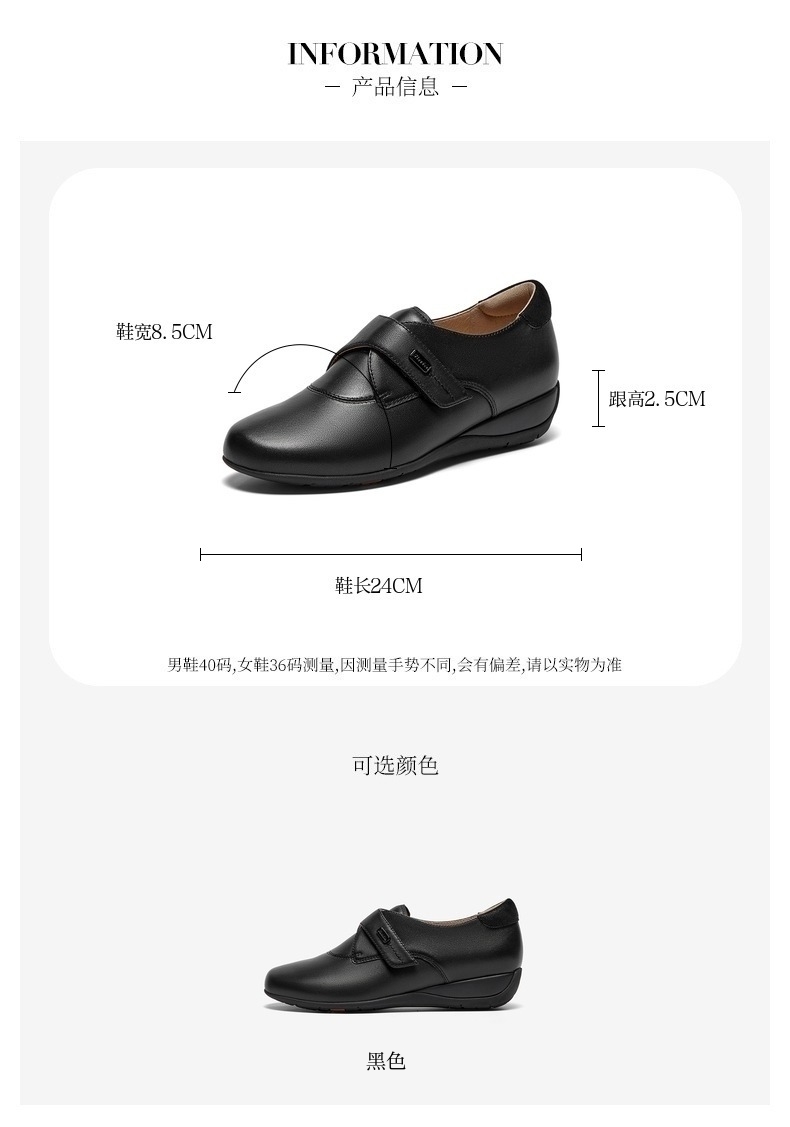 | 色系:黑色 | 跟高数值:2.5CM | 性别:女子 | 里料材质:猪皮革人造革织物面料 | 制鞋工艺:胶贴皮鞋 |