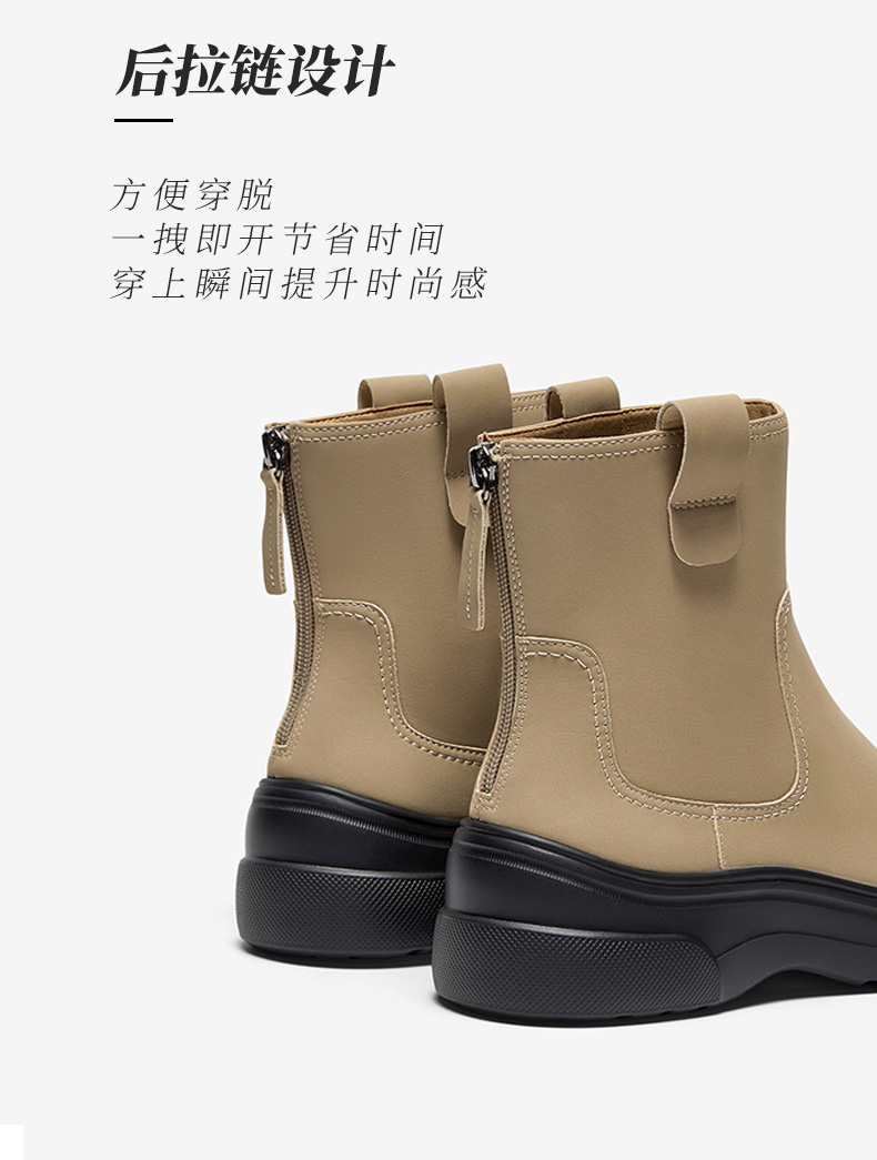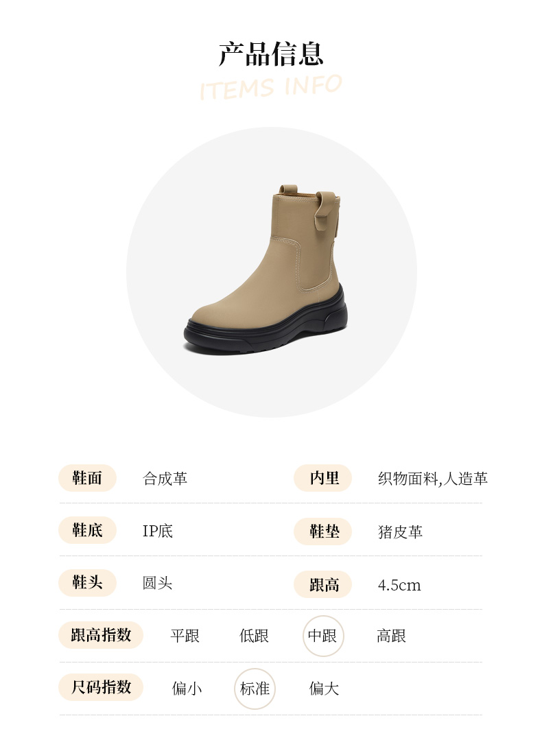 | 鞋底材质:IP底 | 靴筒内里材质:人造革织物面料 | 内增高:无 | 鞋面材质:合成革 | 闭合方式:后拉链 |