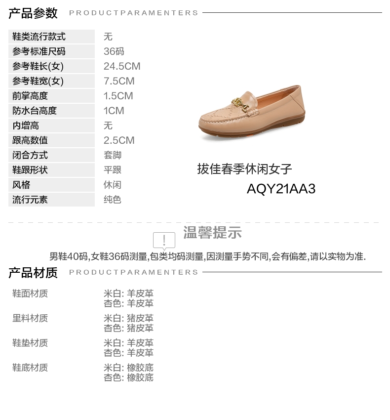 | 鞋帮:低帮 | 鞋底材质:橡胶底 | 内增高:无 | 鞋面材质:羊皮革 | 闭合方式:套脚 |