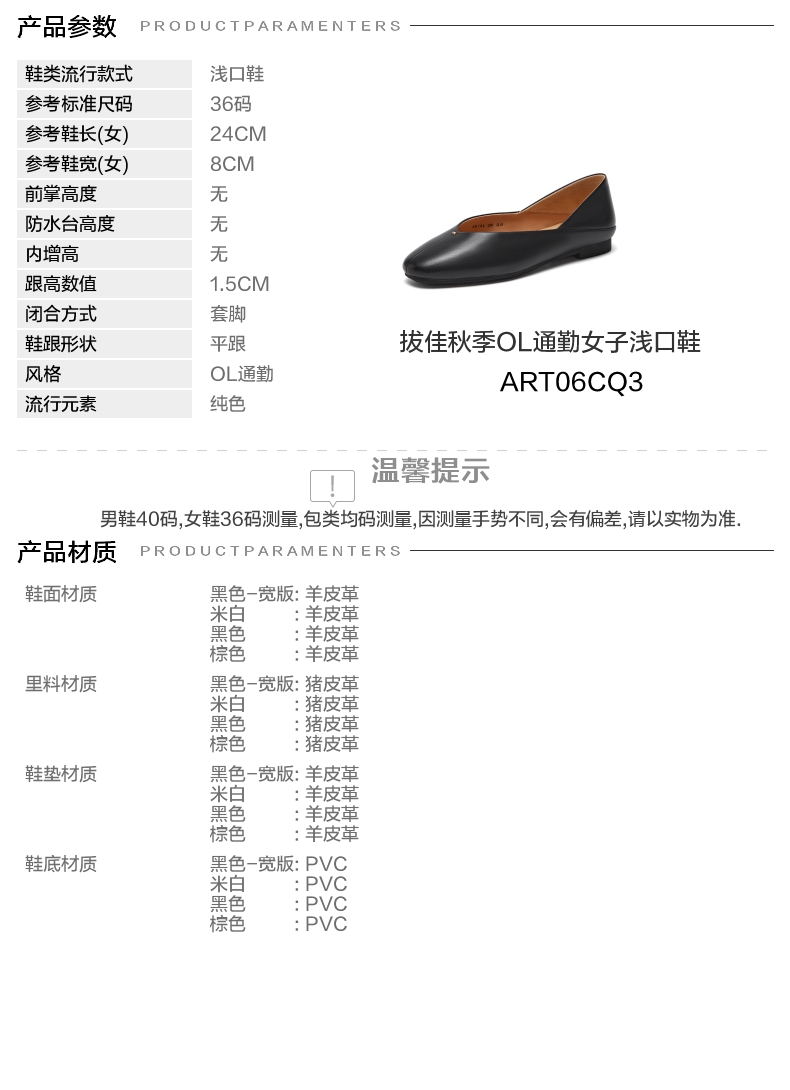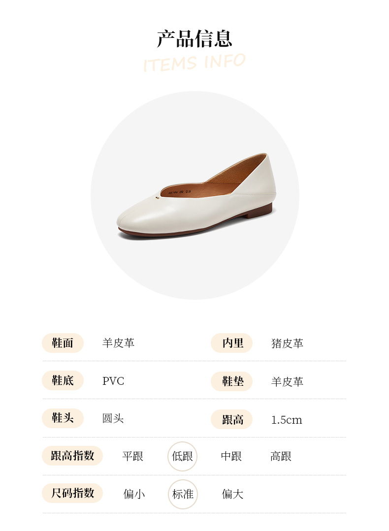 | 皮质特征:软面皮软面皮 | 前掌高度:无无 | 防水台高度:无无 | 鞋类流行款式:浅口鞋浅口鞋 |